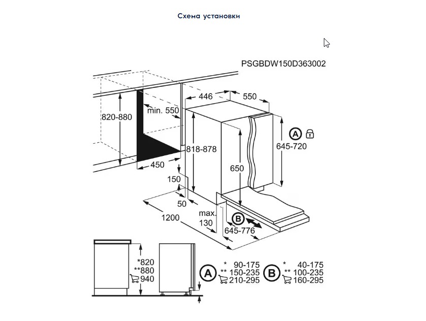 Стандартный монтаж посудомоечной машины
