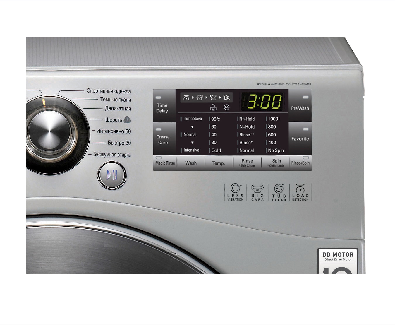 Быстрая, Верхняя одежда, Деликатная, Предварительная стирка, Быстрая стирка, Шерсть, Хлопок, Синтетика