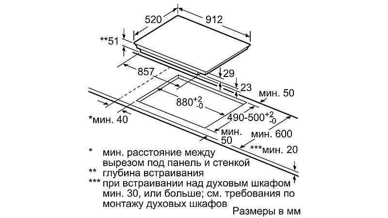 Стандартный монтаж варочной панели