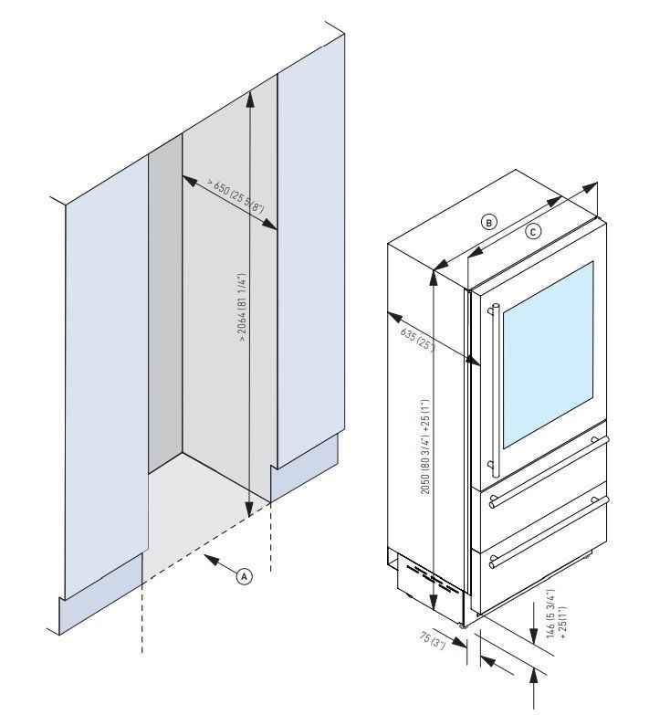 Стандартный монтаж винного шкафа